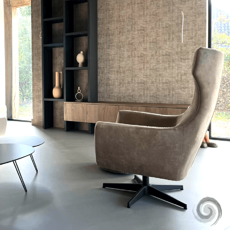In deze woning in Gerwen brachten we 180 m2 PU gietvloer aan in twee kleuren. De vloer, als basis, past prachtig bij het meubilair en de wandbekleding.