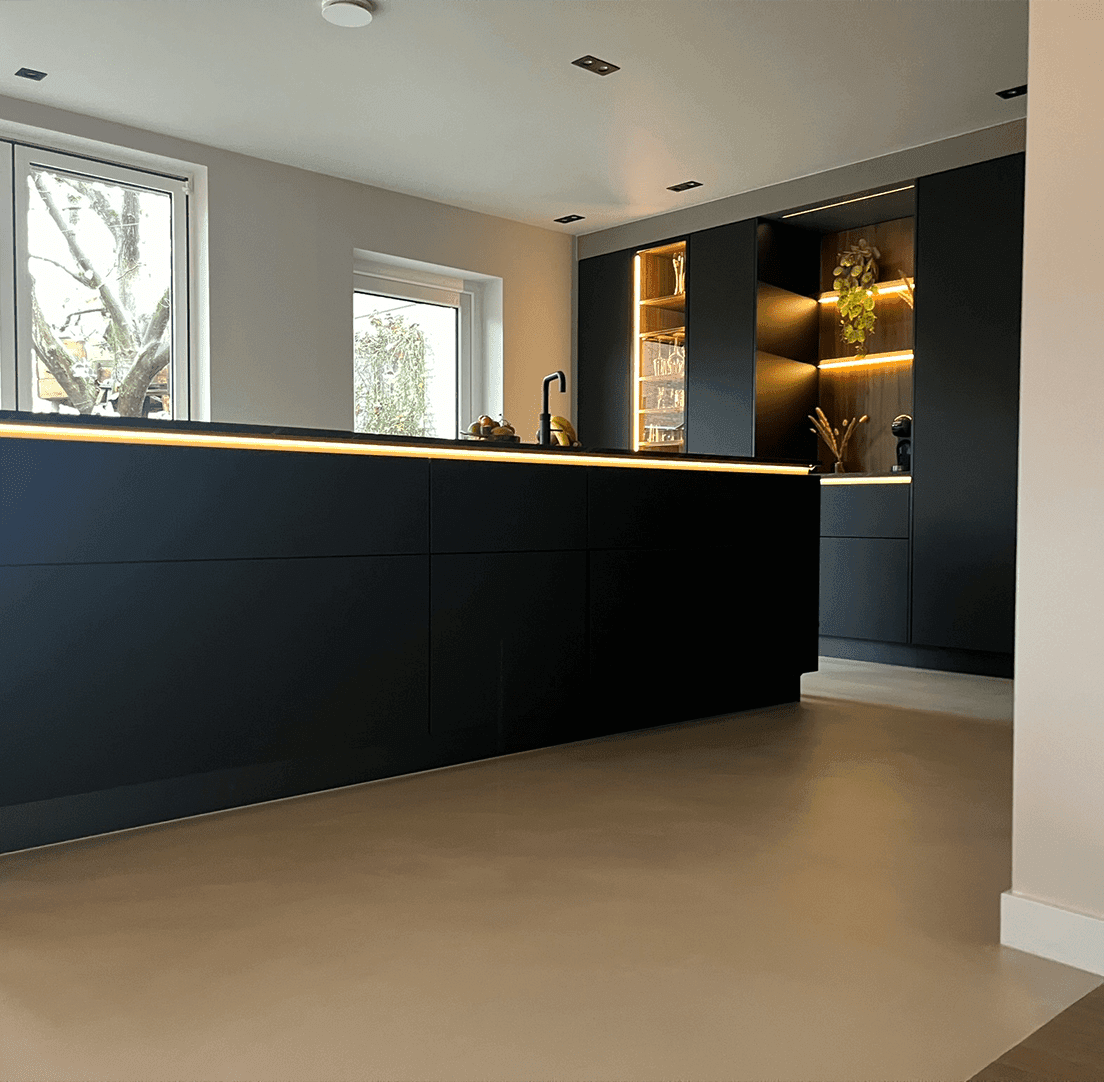Een Lavasteen Gietvloer wordt ook wel een vulkanische steen Gietvloer genoemd. De vloer bestaat uit een mix van vulkanisch gesteente en harsen mét vloeiadditief. Dat zorgt voor een subtiele, organische beweging in het oppervlak. De vloer vloeit mooi weg, maar wordt niet volledig vlak. Perfect voor wie houdt van een subtiele textuur en een natuurlijke look.